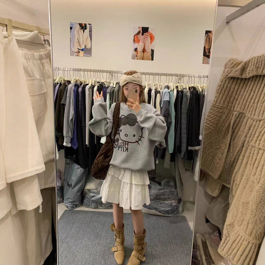 Casual Long Sleeve KT Cat Loose Round Neck Women's Hoodie