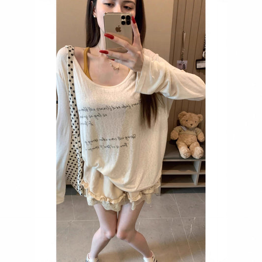 Casual Loose Semi-Transparent Printed Long Sleeve T-Shirt for Women Sun Protection Top