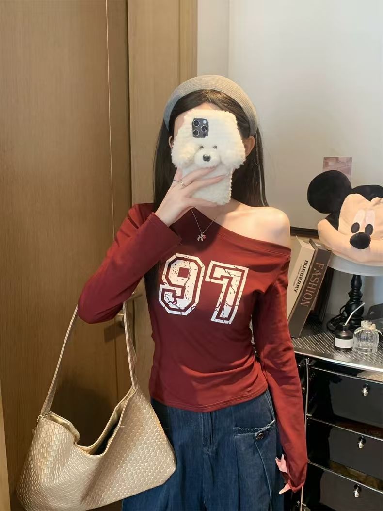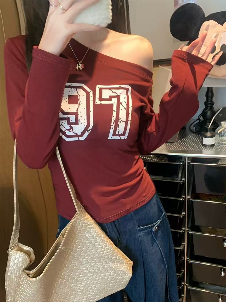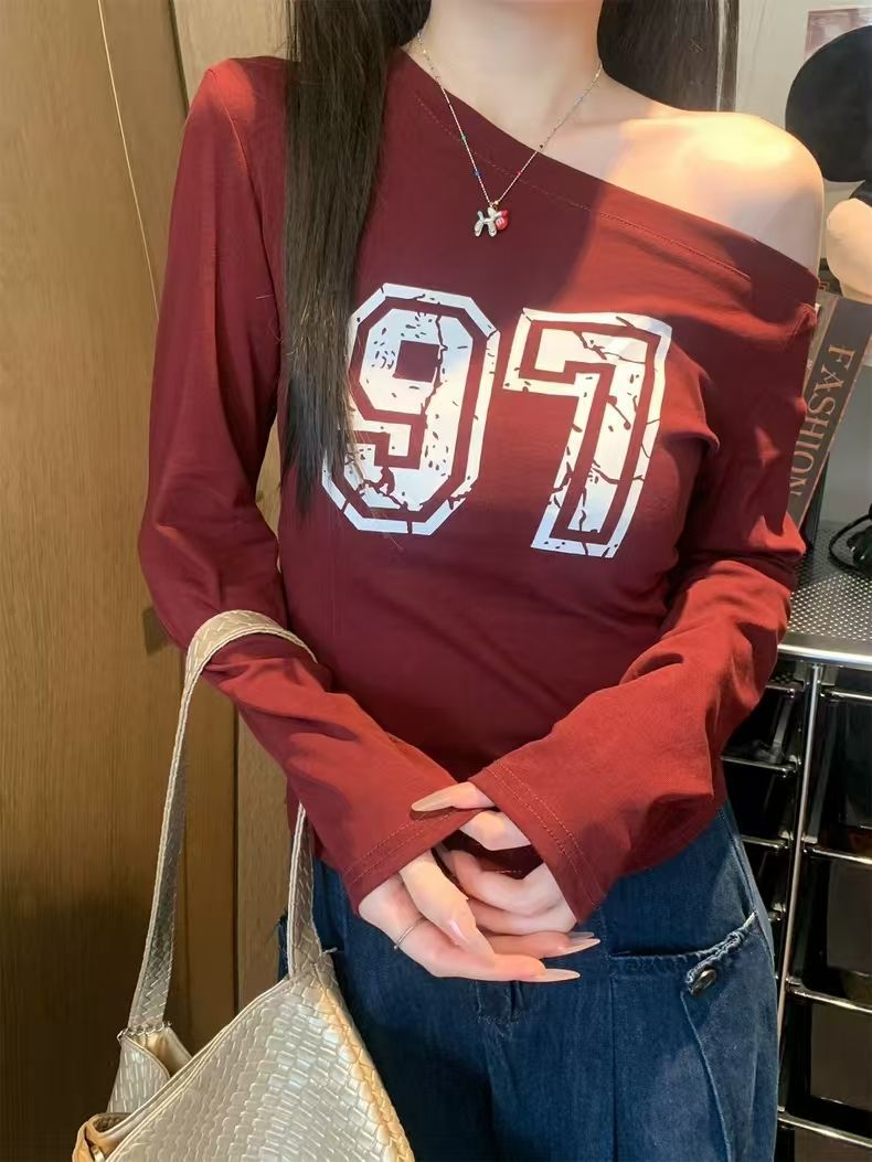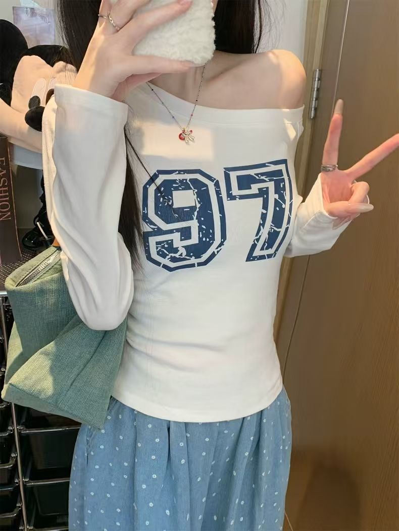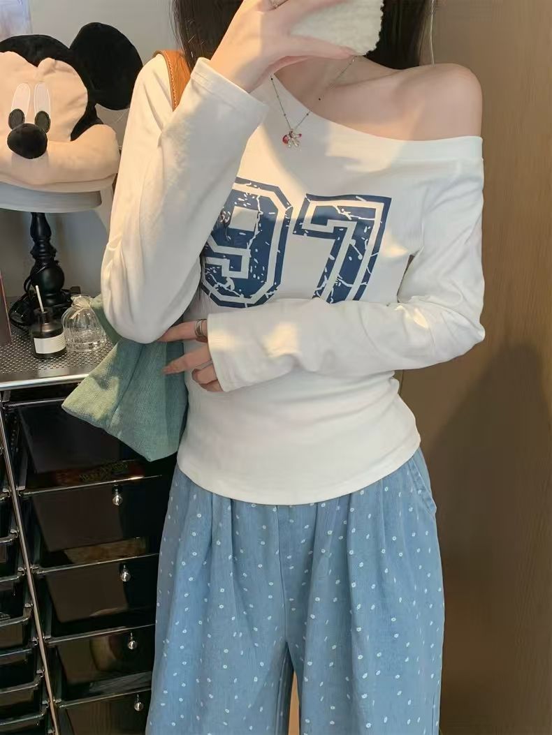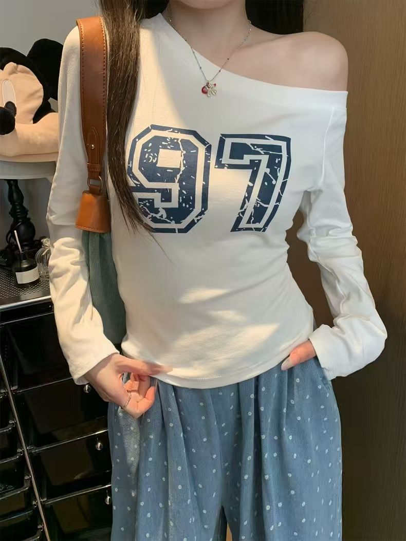 Chic Printed Long Sleeve T-Shirt for Women, Slim Fit, High Neck Design