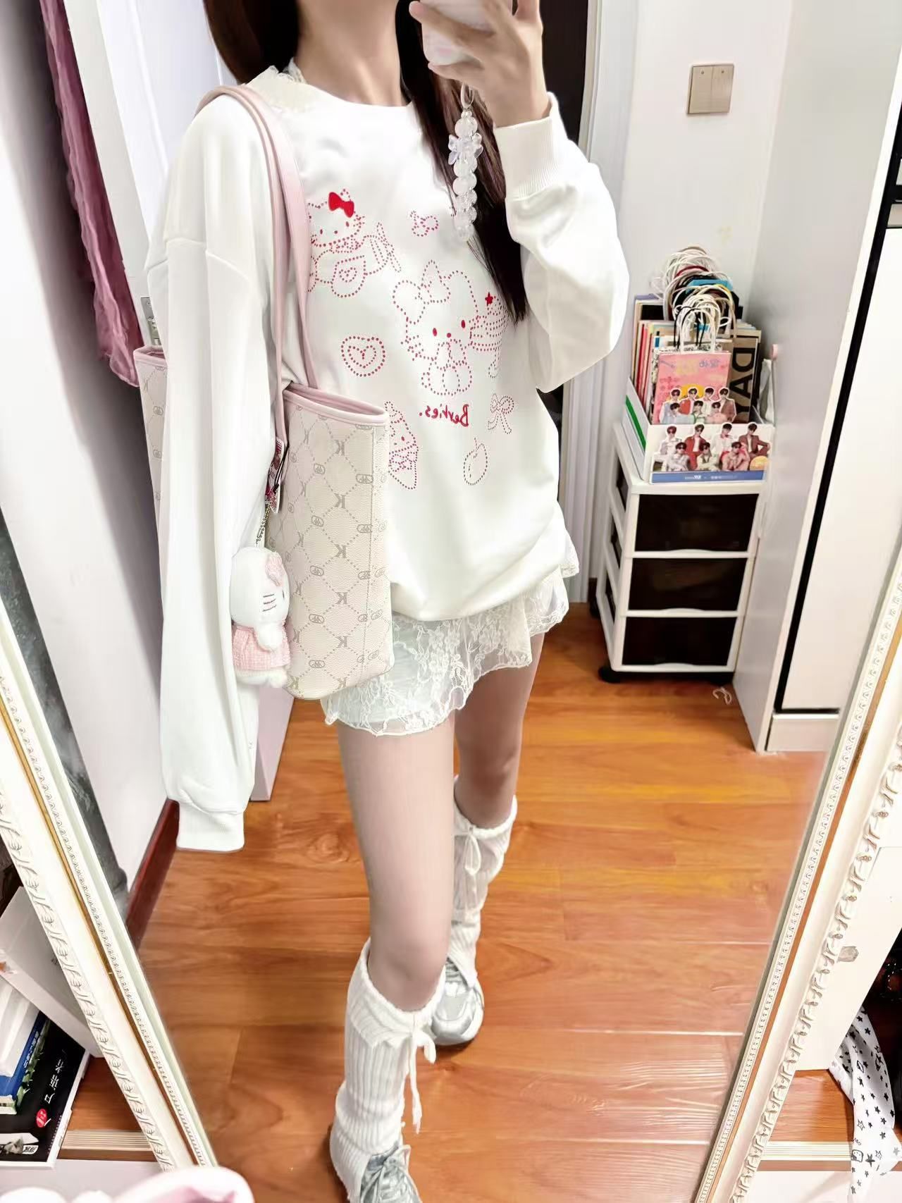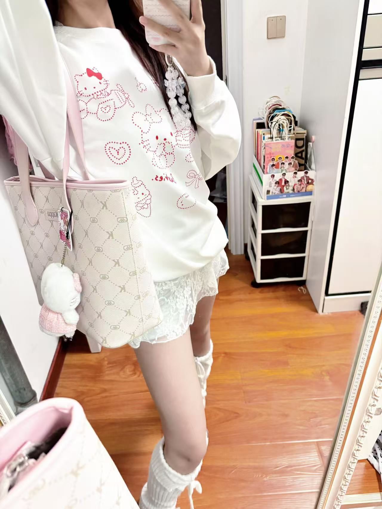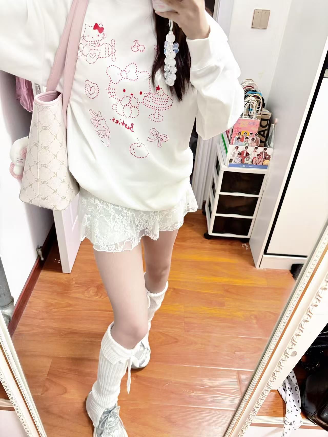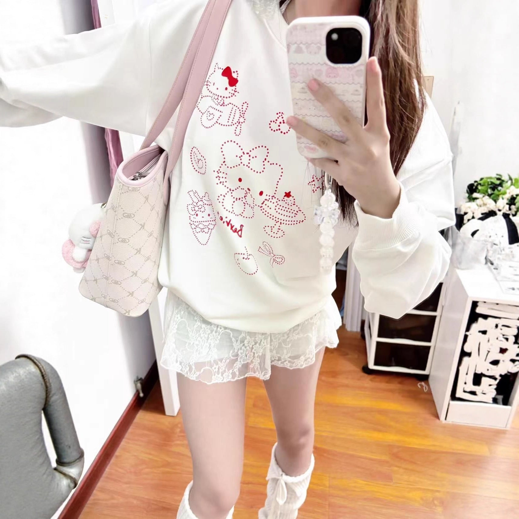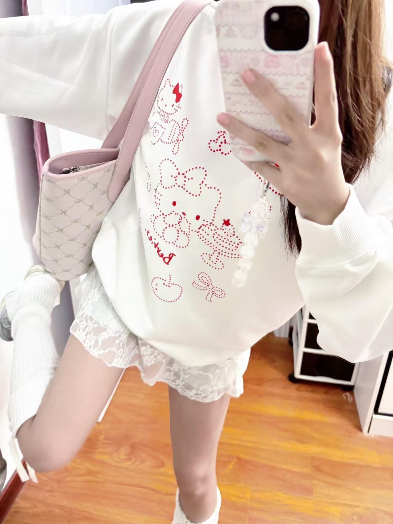 Cute KT Cat Print Casual Loose Hoodie for Women