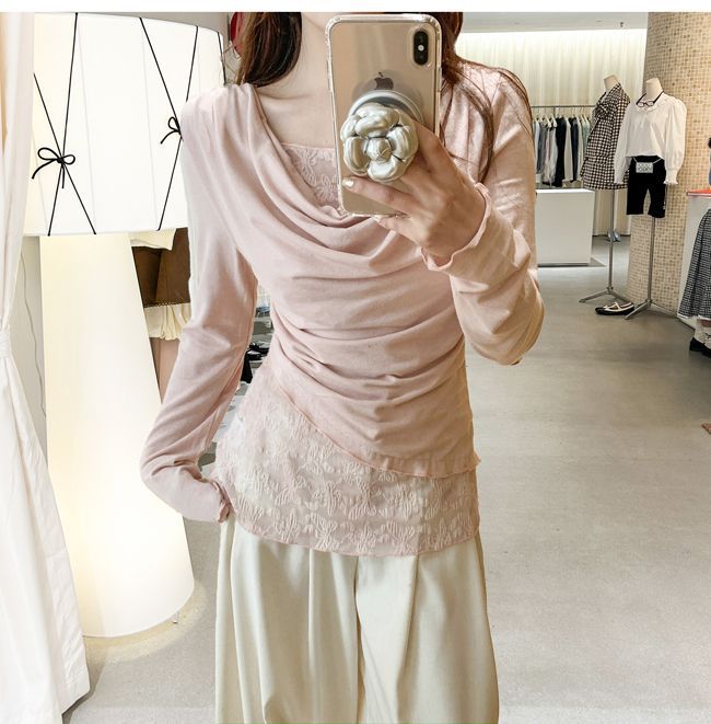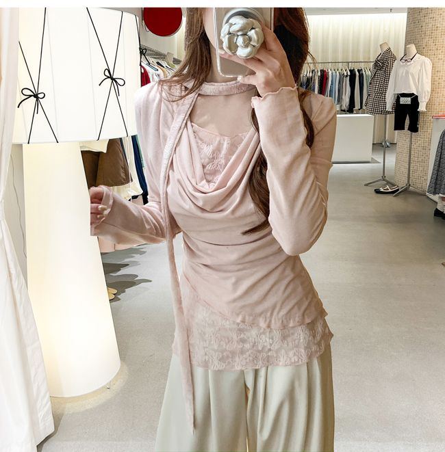 Cute Youthful Ruffled Neck Lace Spliced False Two-Piece Asymmetrical Top